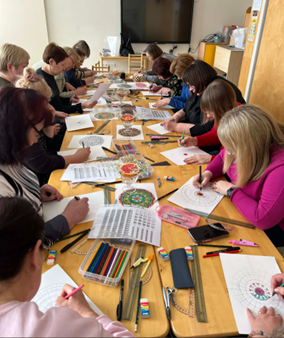 Vasario 19 d. Joniškio miesto „Ąžuoliukas“ darželyje įvyko edukacinis-terapinis mandalų piešimo užsiėmimas „Jauti“, skirtas darželio darbuotojams, ieškantiems galimybės atsipalaiduoti, susitelkti į save ir pasisemti ramybės.