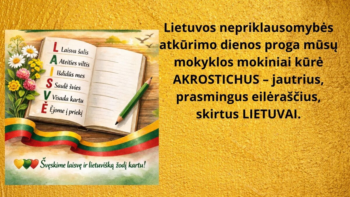 Kuriame Akrostichus Lietuvai nepriklausomybės atkūrimo proga