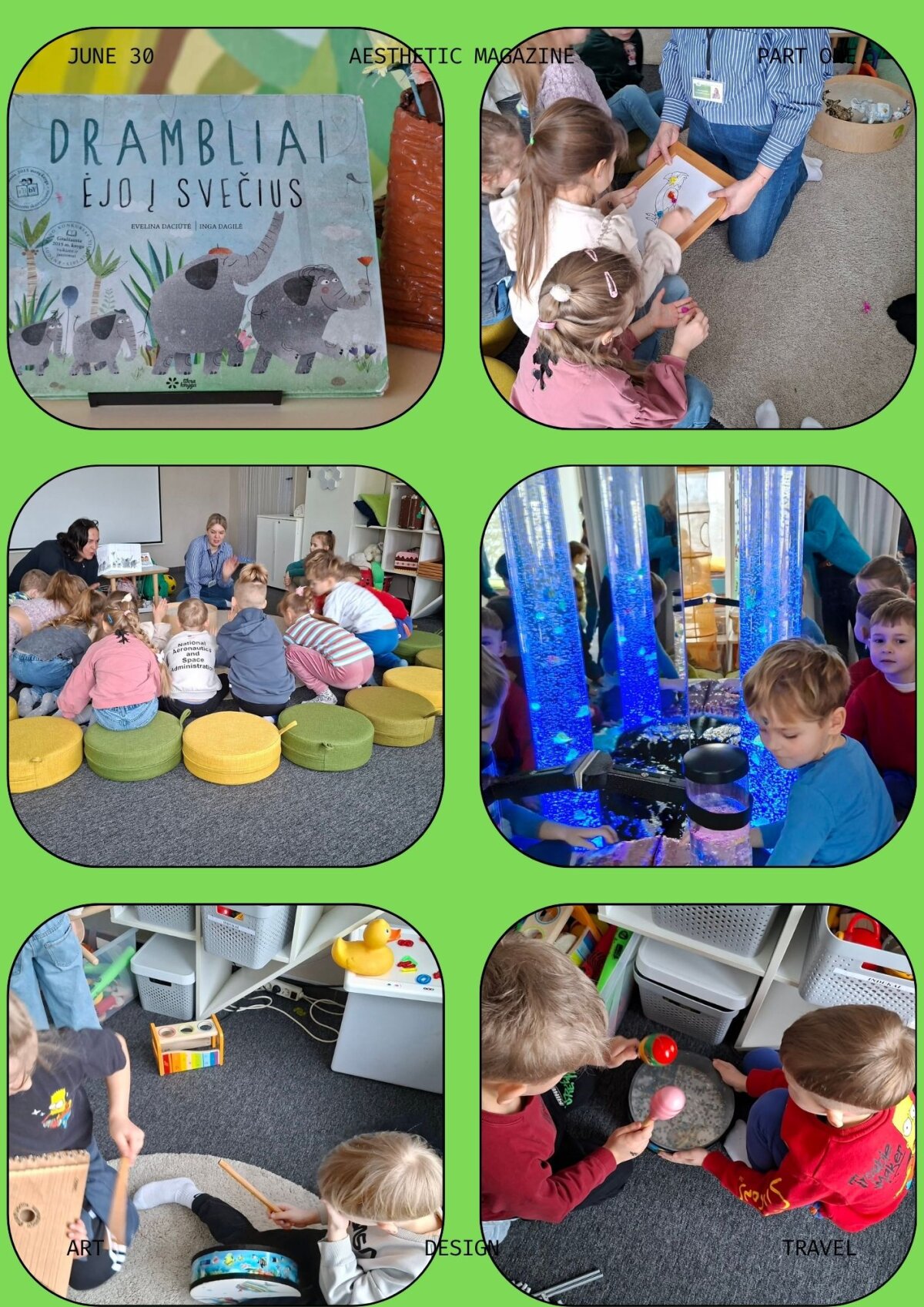 Sensorinis skaitymas ir veiklos pagal knygelę "Drambliai eina į svečius"