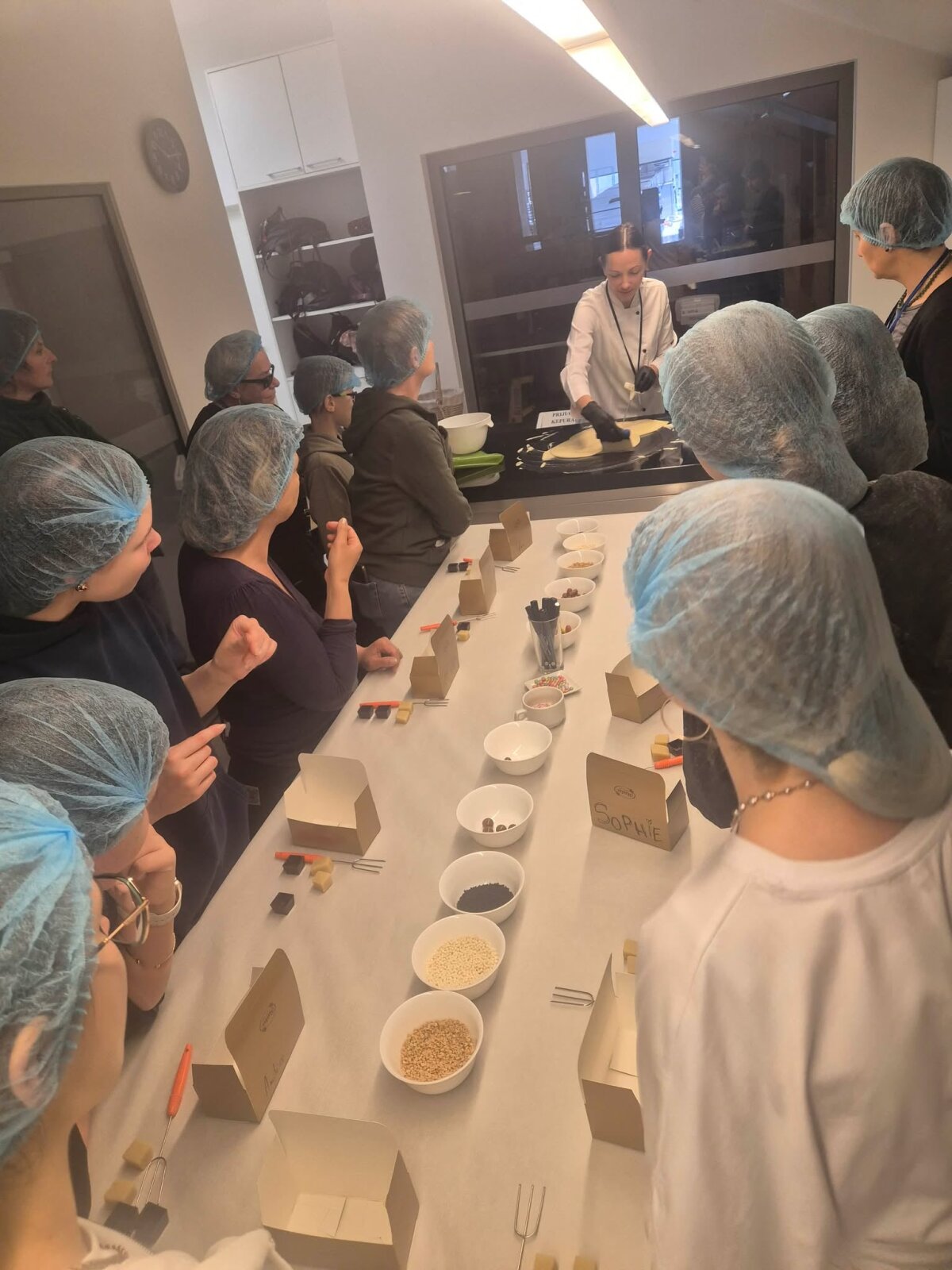 Ketvirtąją dieną mokiniai dalyvavo anglų ir muzikos pamokose, kūrė ritmus kūno perkusijos būdu, lankėsi šokolado fabrike „Rūta“, kur gamino saldainius. Dieną vainikavo boulingas, degustacijos ir žaismingas „Kahoot“ žaidimas.