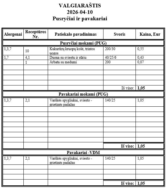 | Valgiaraščiai | ||||