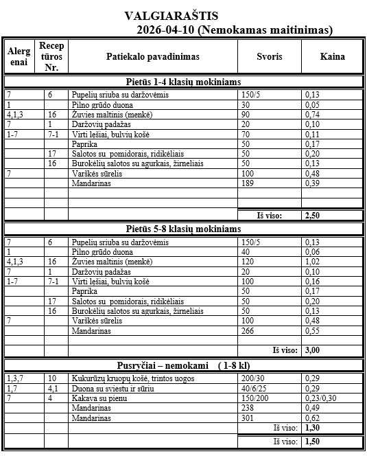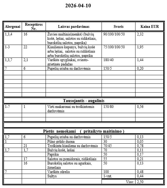 | Mokinių maitinimas | Atnaujinta | Dydis | ||