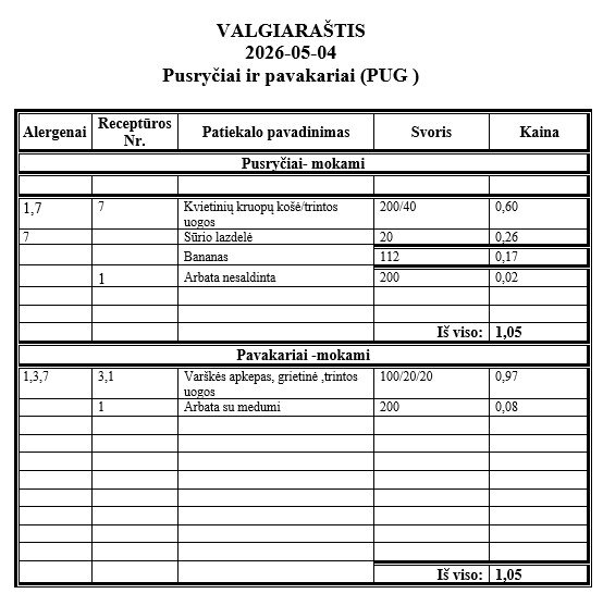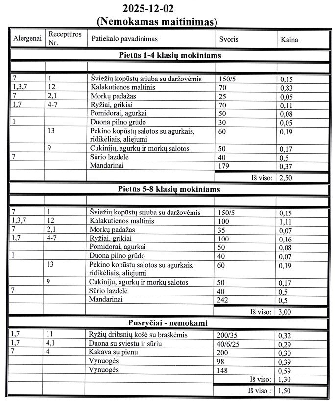 | Vaikų maitinimo organizavimo tvarkos aprašas | 2025-10-06 16:11:13 | 28.75 KB | ||
