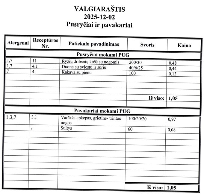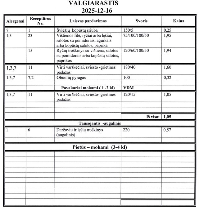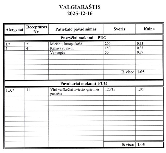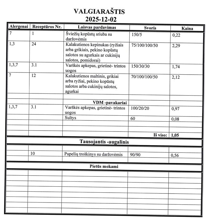 | Valgiaraščiai | ||||