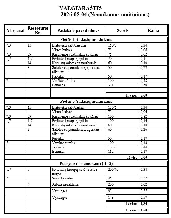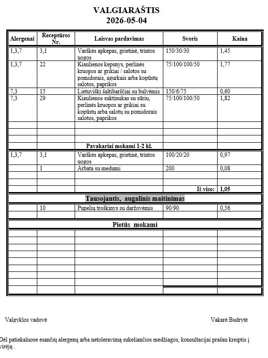 | Mokinių maitinimas | Atnaujinta | Dydis | ||