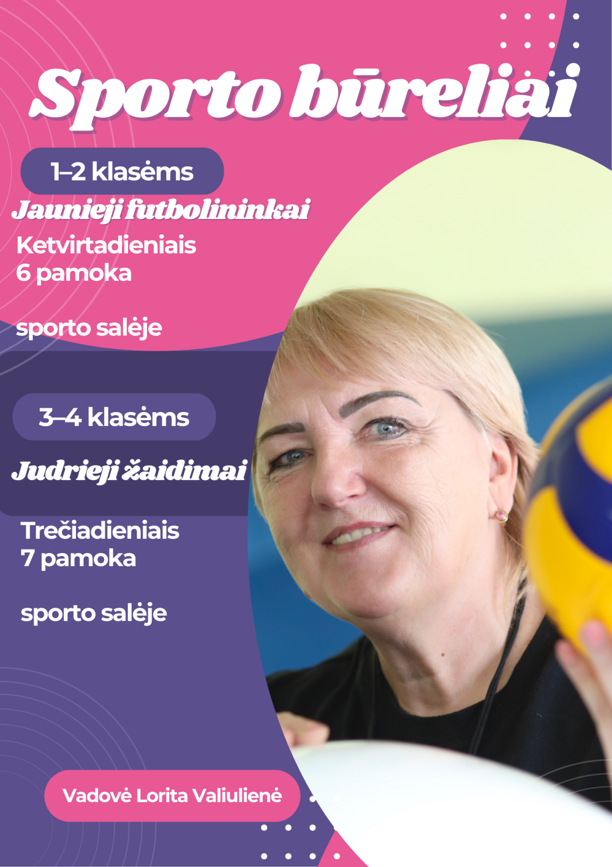 - Sportinis būrelis „Judrieji žaidimai“ (3-4 kl.), Lorita Valiulienė;