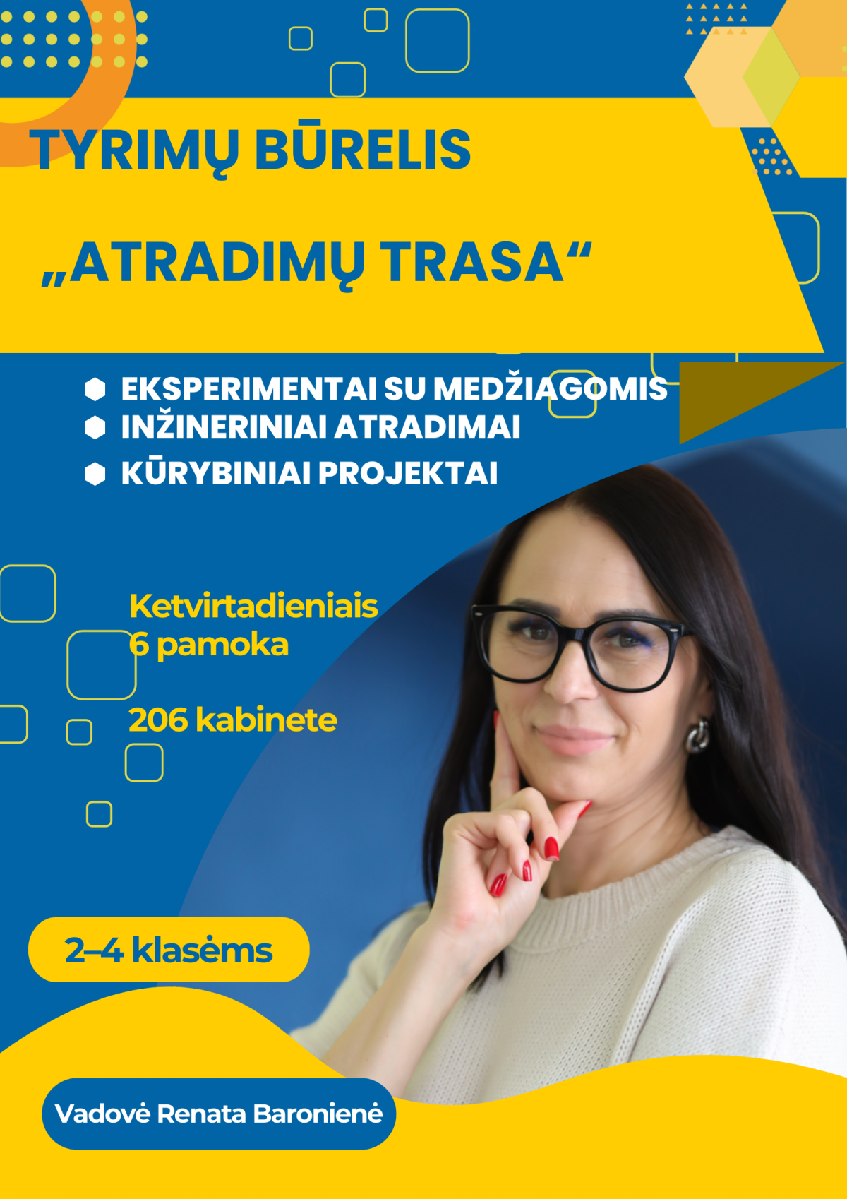 - Tyrimų būrelis „Atradimų trasa” (2-4 kl.), Renata Baronienė;