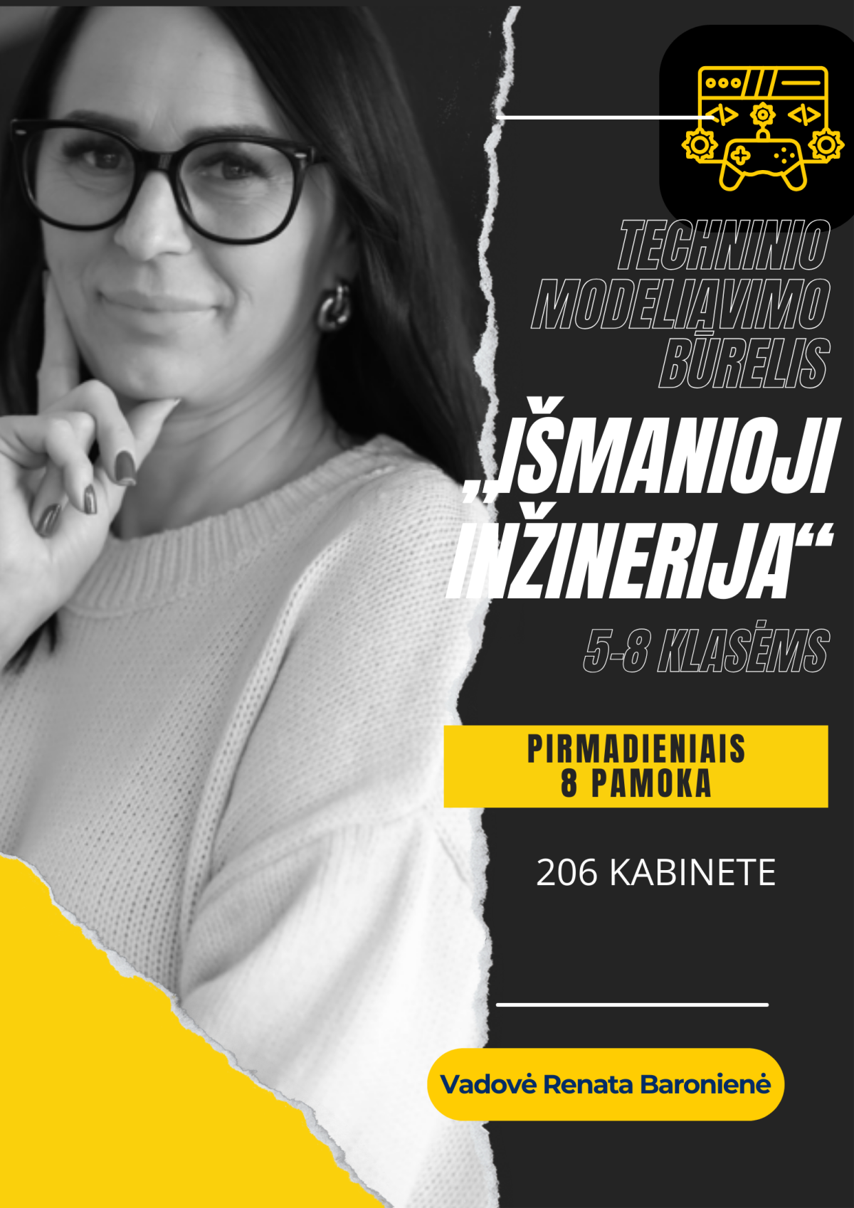 - Tyrimų ir modeliavimo būrelis „Išmanioji inžinerija“ (5-8 kl.), Renata Baronienė;