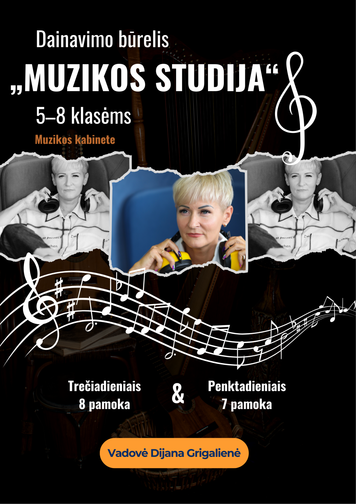 - Dainavimo būrelis „Muzikos studija“ (5-8 kl.), Dijana Grigalienė;