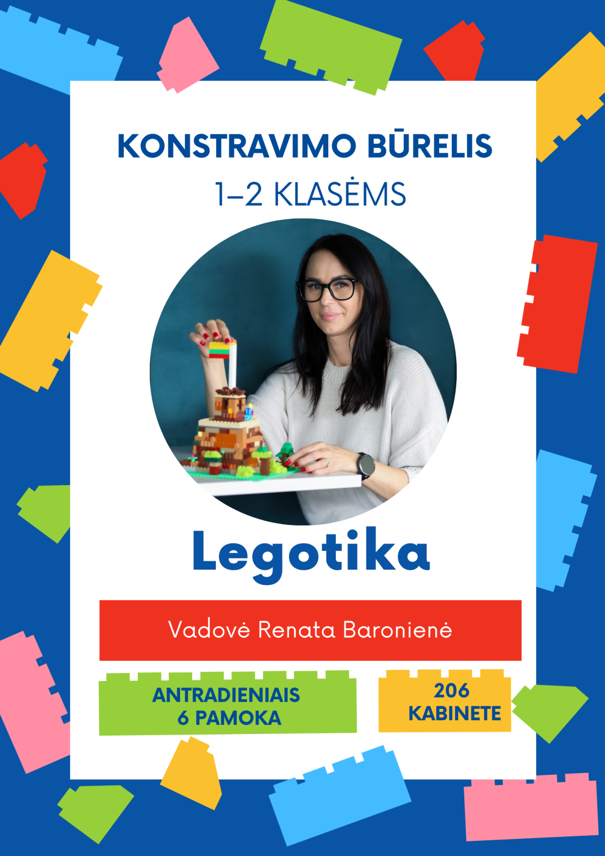 - Konstravimo būrelis „Legotika“ (1-2 kl.), Renata Baronienė;