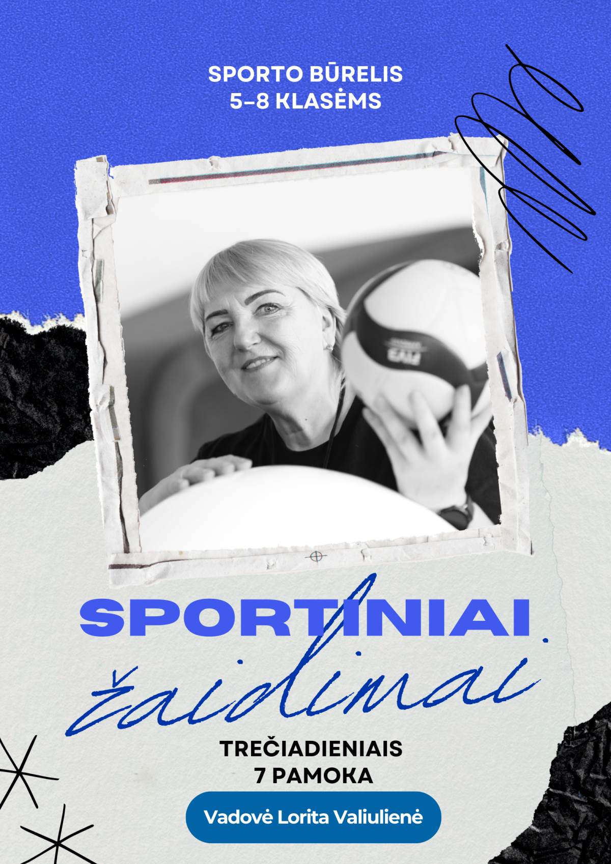 - Sporto būrelis „Sportiniai žaidimai“ (5-8 kl.), Lorita Valiulienė;