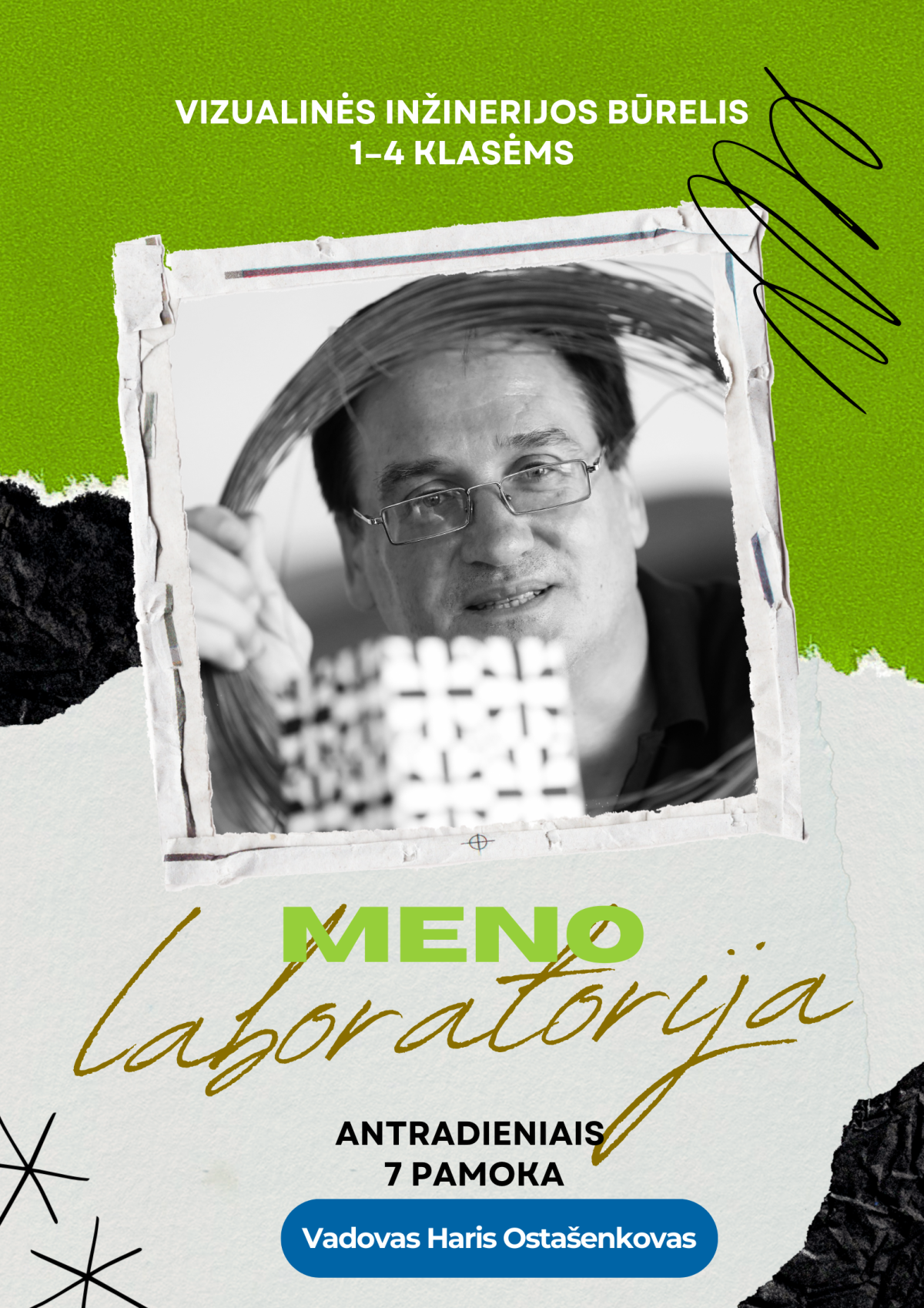 - Vizualinės inžinerijos būrelis „Meno laboriatorija“ (1–4 kl.), Haris Ostašenkovas;