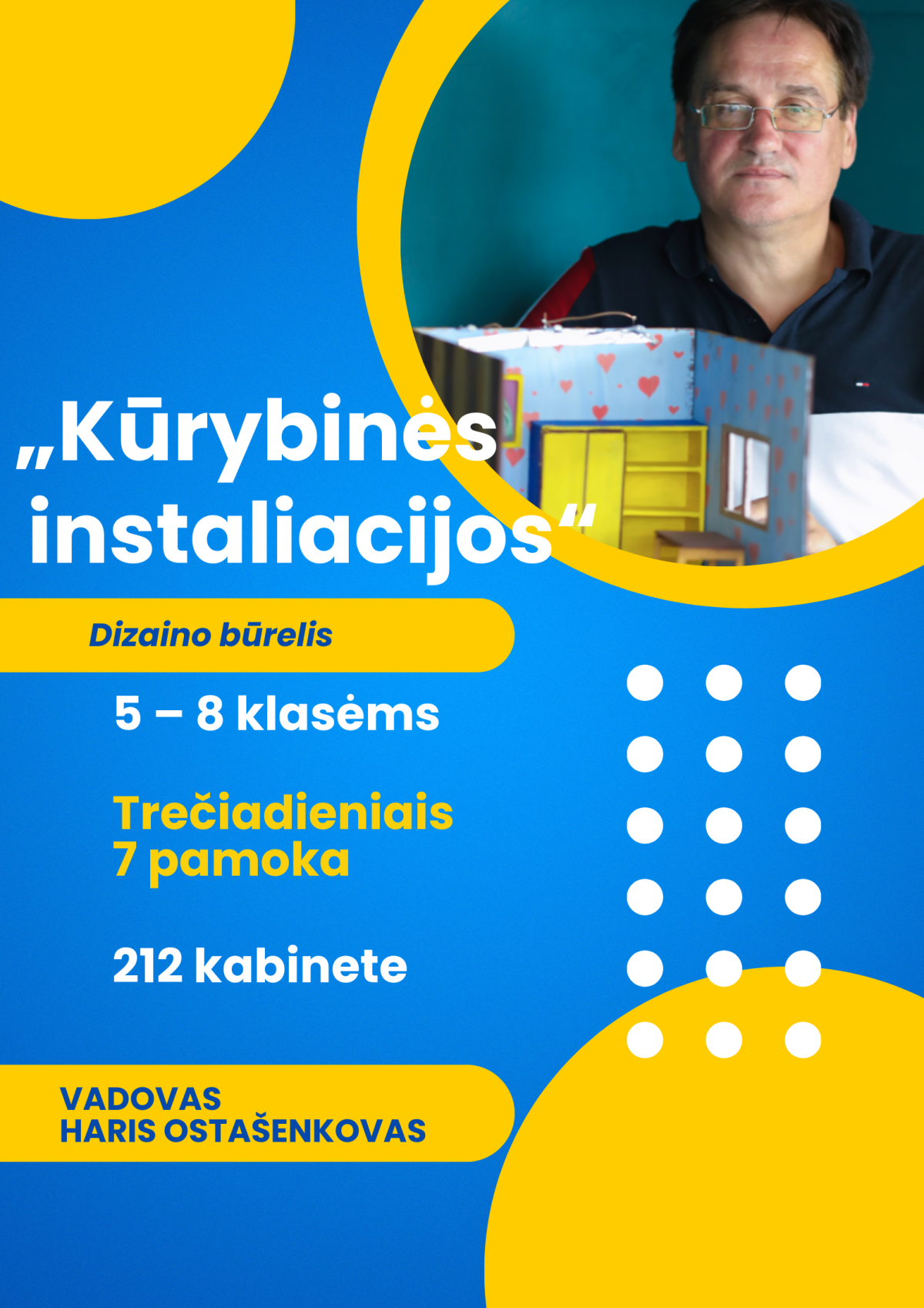 - Dizaino būrelis „Kūrybinės instaliacijos“ (5–8 kl.), Haris Ostašenkovas.